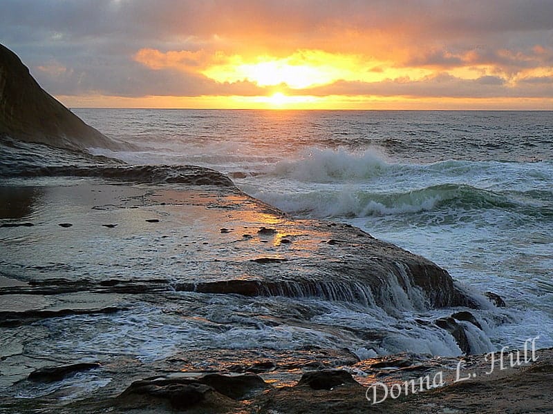 I climbed a sand dune then scrambled down a slickrock outcropping to capture the sunset at Oregon’s Cape Kiwanda.